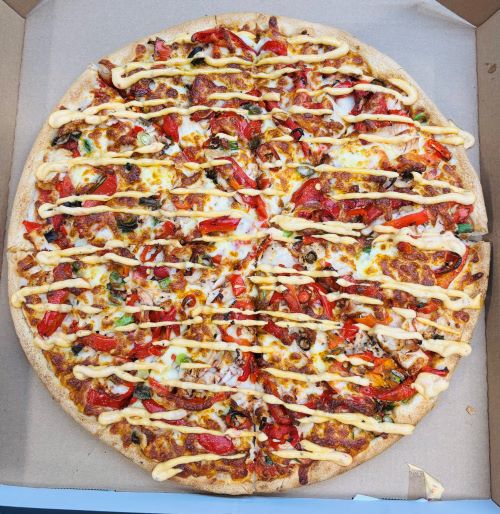 house cooked meats and vegetables, our homemade condiments, a 24 hour proved dough, made with olive