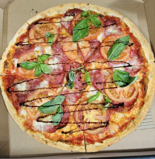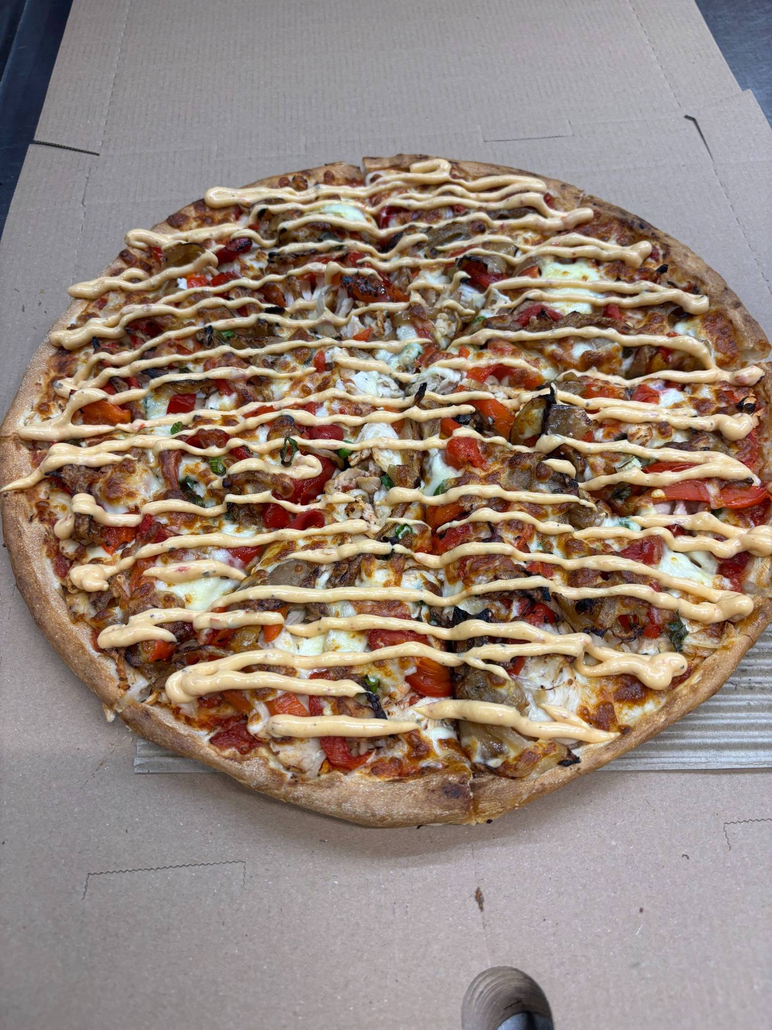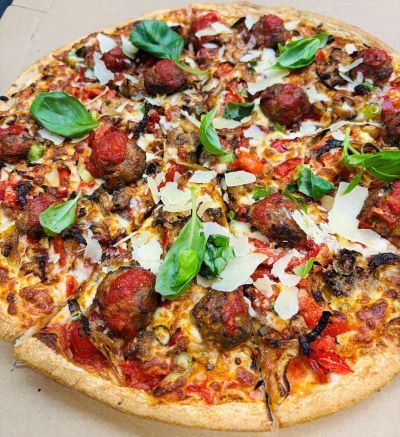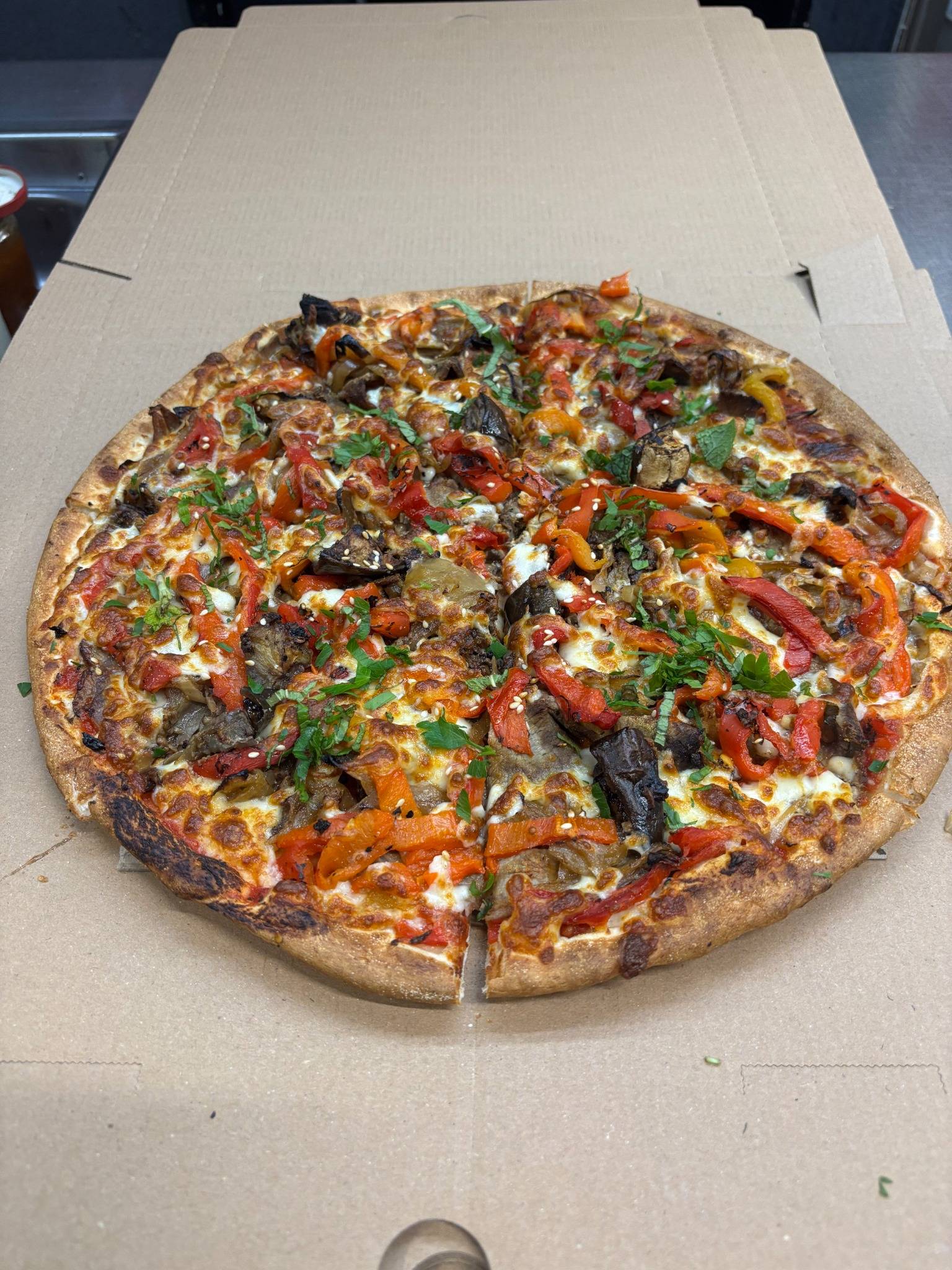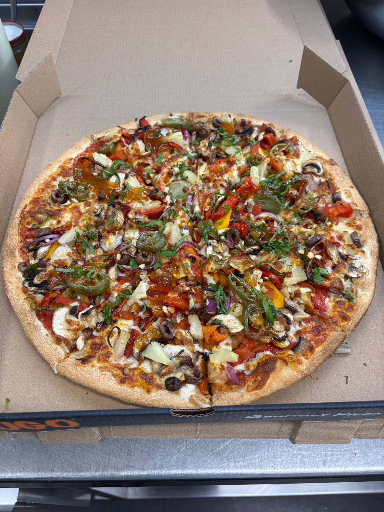 house cooked meats and vegetables, our homemade condiments, a 24 hour proved dough, made with olive